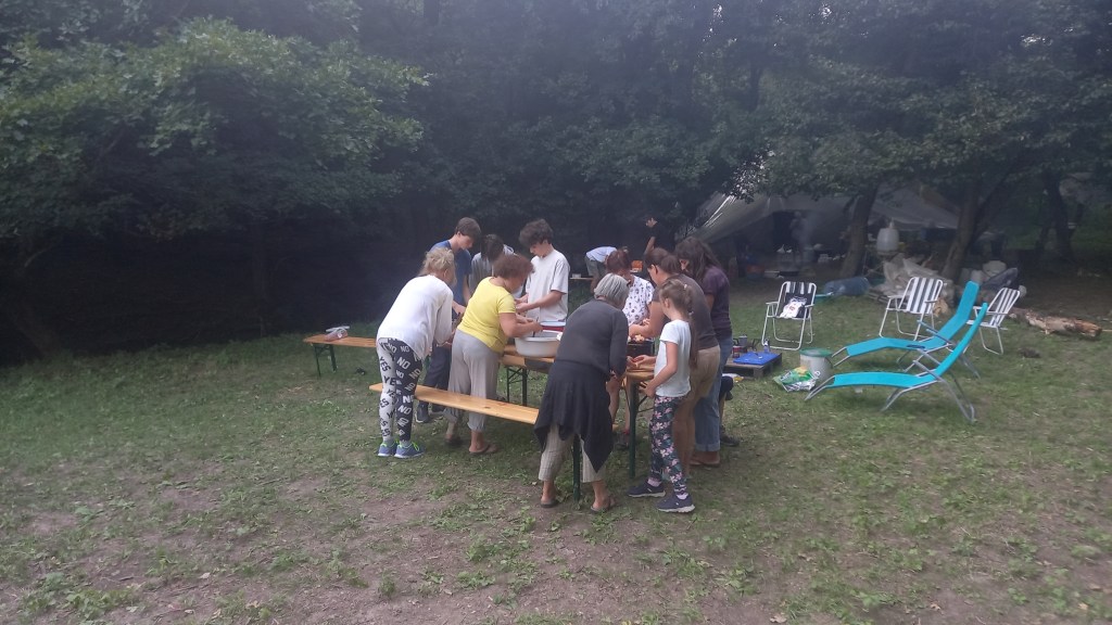 Rendhagyó próba volt ez a gyermekeknek és felnőtteknek egyaránt. Lavórban mosakodtunk, vizet hordtunk a kútról, tüzet raktunk, bográcsban főztük a vacsorát és sátorban aludtunk. Napközben játszottunk, beszélgettünk, túráztunk, köveket gyűjtöttünk a patakból, tehenekkel és libákkal ismerkedtünk, s egy kis csapattal ellátogattunk a városba is. Sok gyermek számára életre szóló élményt adott ez a tábor. Ebben a szellemben szeretnénk folytatni a tanítást a Tüskevárban.