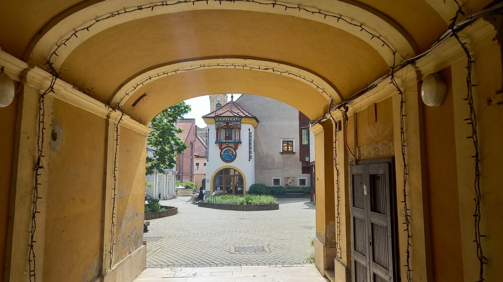 Egy múzeumpedagógiai foglalkozás keretében kis csoportokban kellett bebarangolni a történelmi belvárost és rejtvények segítségével eljutni helyszínről helyszínre. A találkozó a Korona téren, a Nemzeti Emlékhely–Középkori Romkertnél volt. Innen indult el hat különböző csapat a rövid túrára. A vasútállomástól a belvárosba és vissza együtt sétált a két osztály a gyönyörű tavaszi napsütésben.