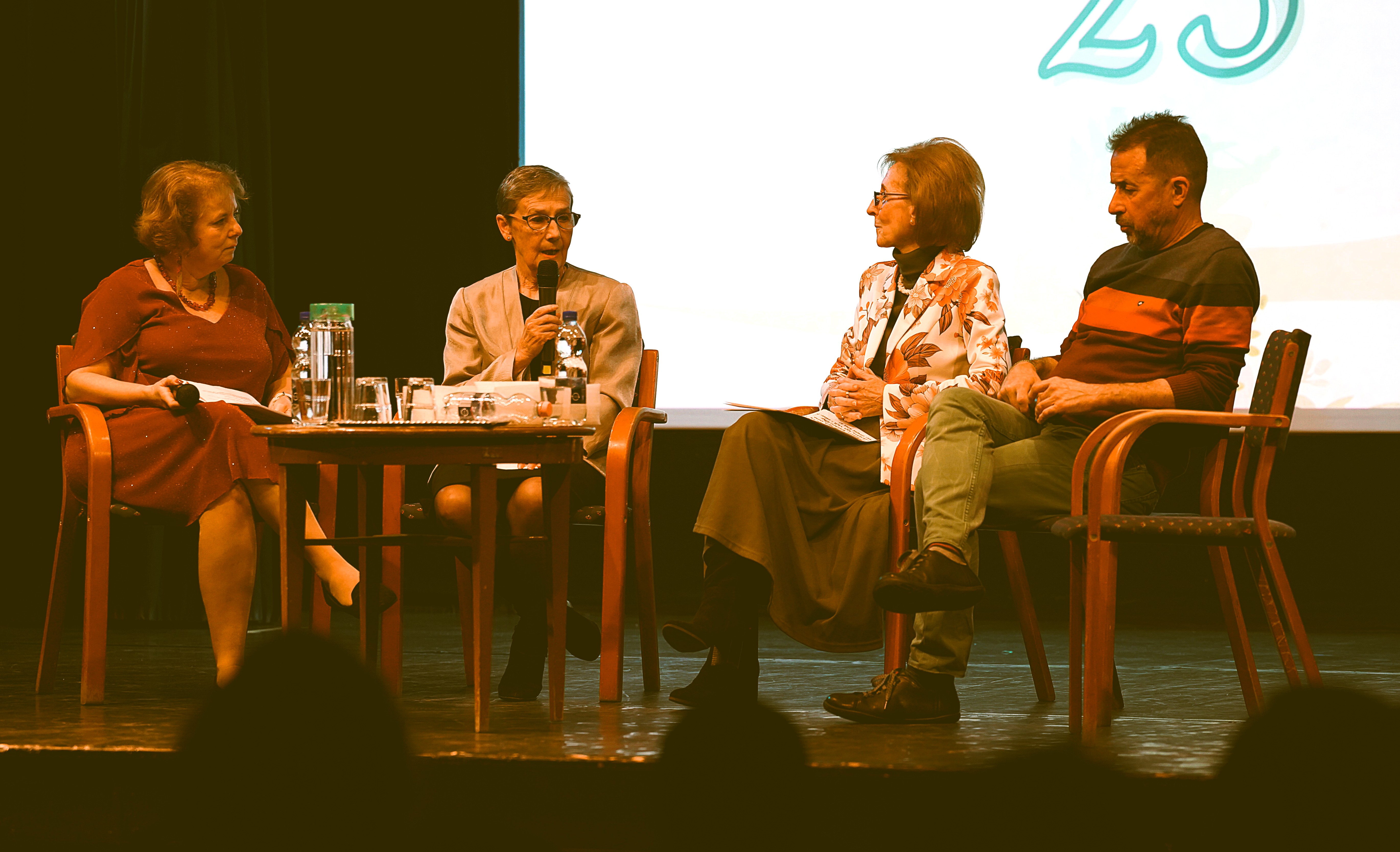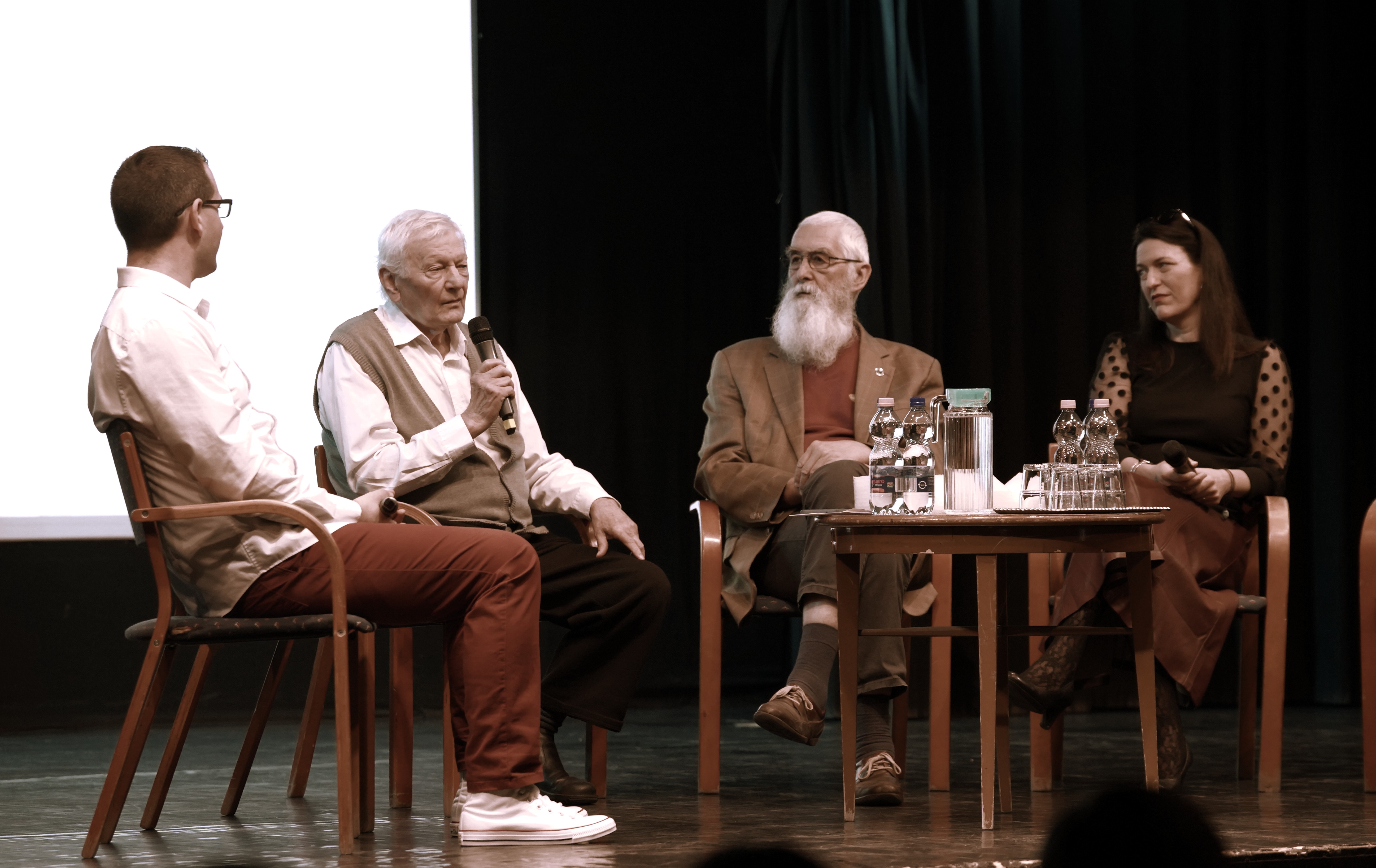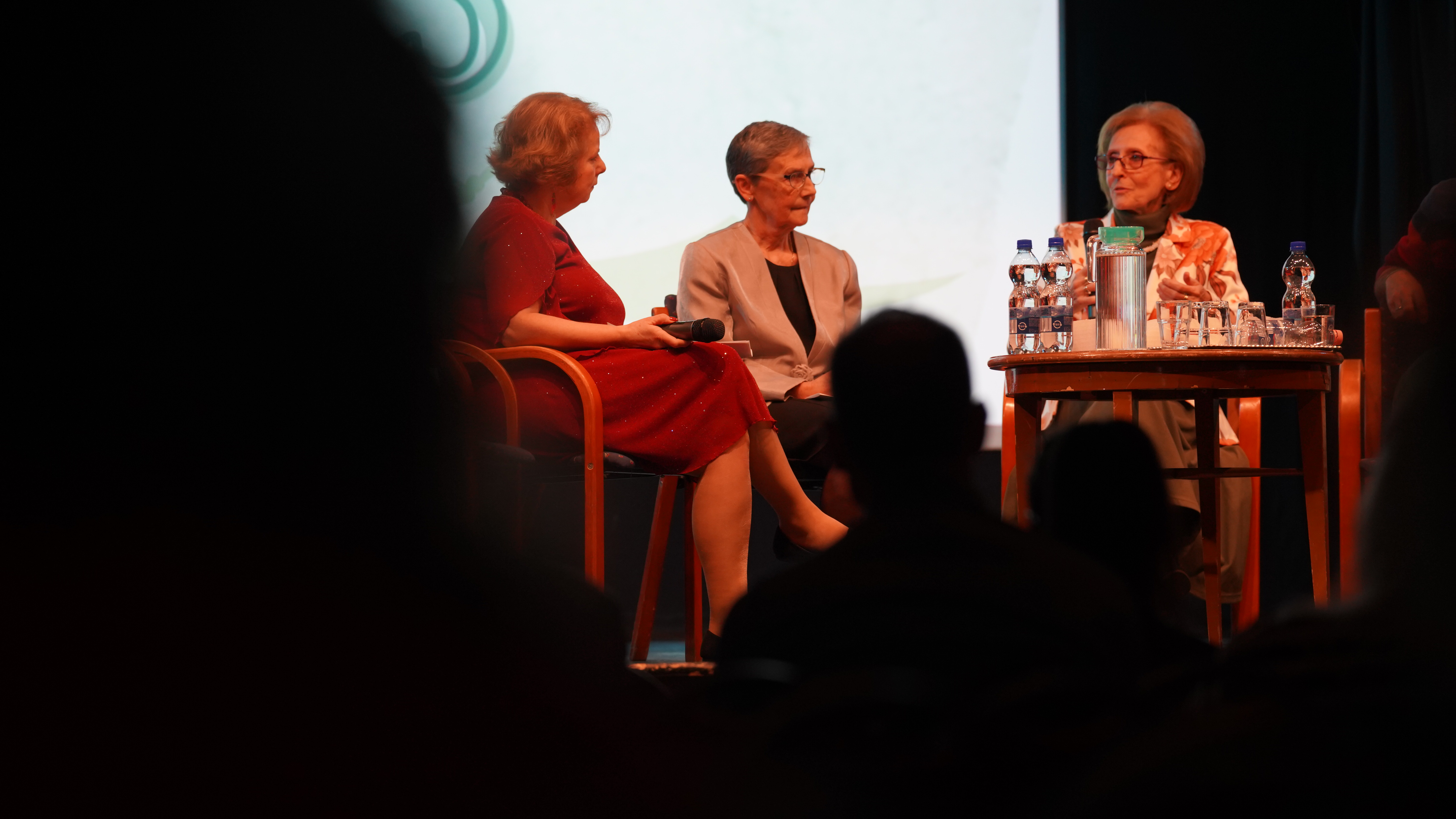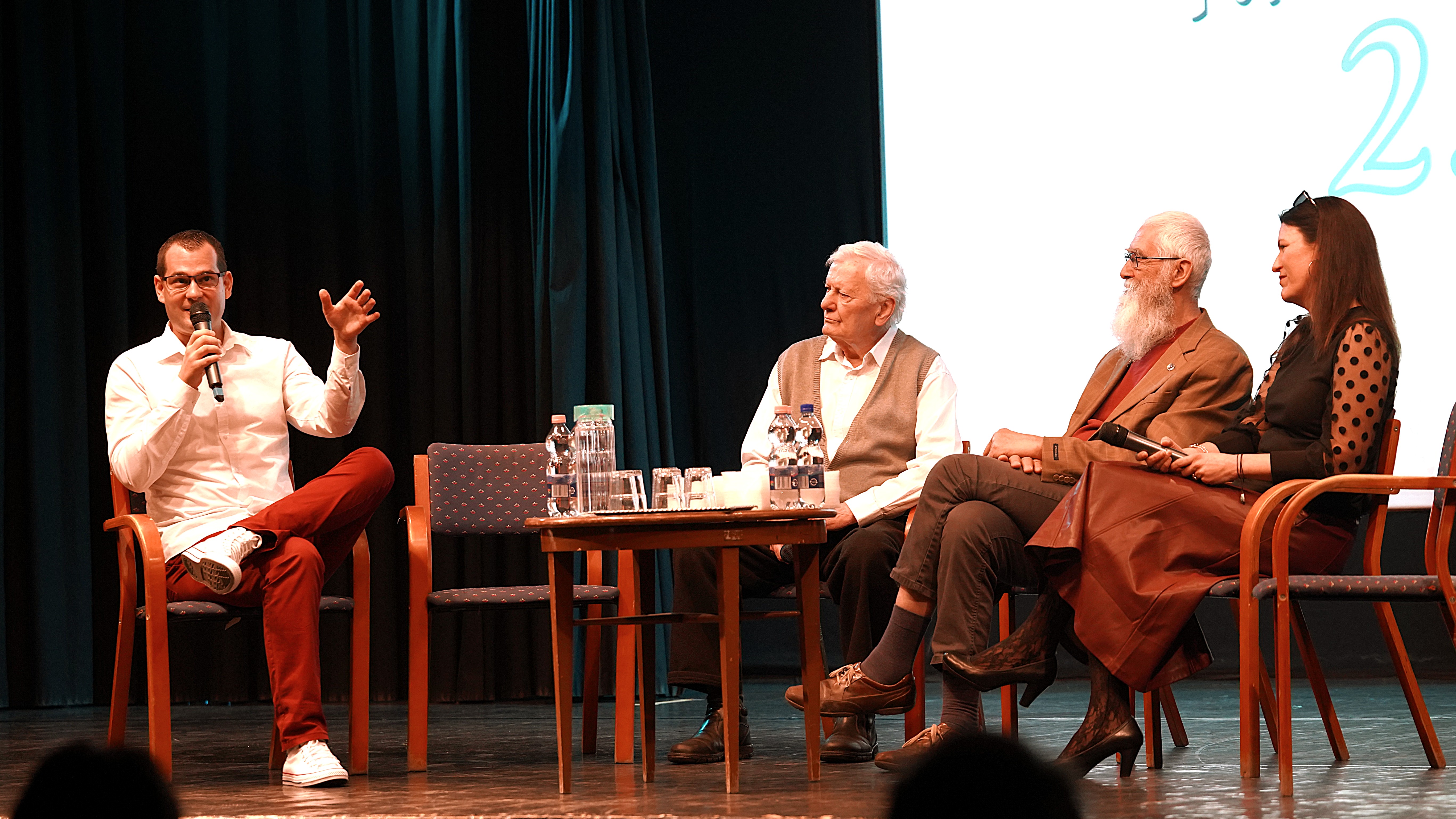 Az újpesti Ifjúsági Ház látott vendégül bennünket, ahol háromszor másfél órában a szakma nagyjaival ültünk le beszélgetni. A közönség soraiban szülők, kollégák, volt kollégák és volt diákok foglaltak helyet. A pódiumbeszélgetések fókusza a család, a gyermek, végül pedig az iskola volt. Egy-egy széket mindig üresen hagytunk, hogy bárki csatlakozhasson a diskurzushoz. Szívmelengető volt, hogy nemcsak jelenlegi szülő, de volt kolléga és diák is élt a lehetőséggel.