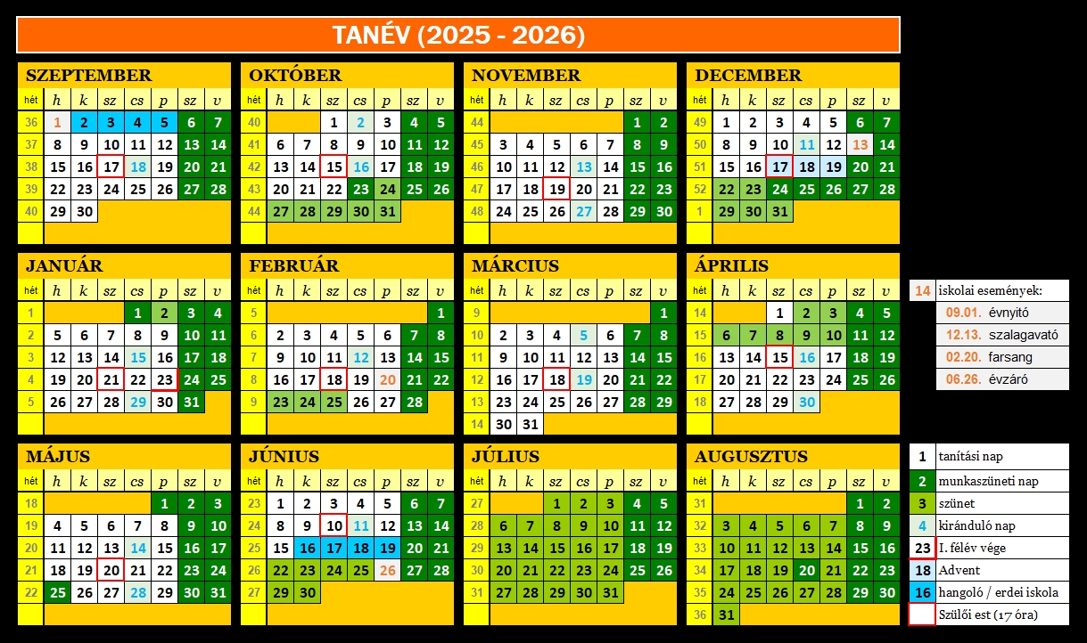 | Tanév rendje (2025-2026) | Megtekintés >> |